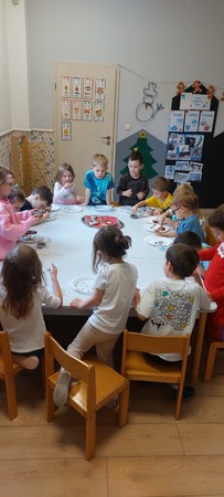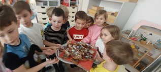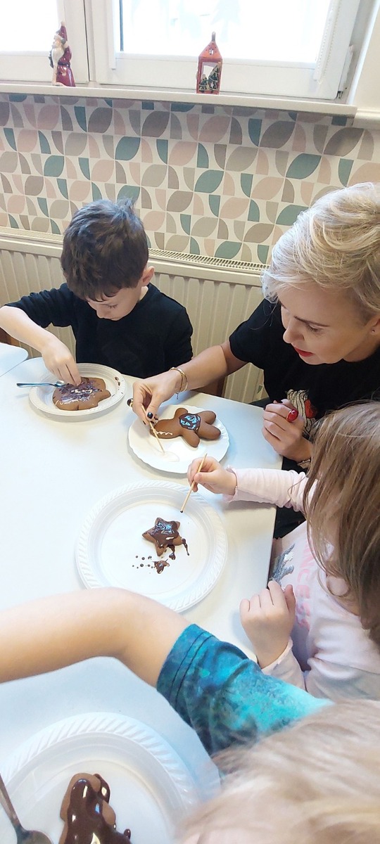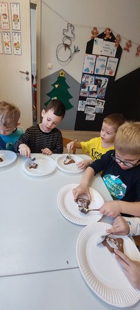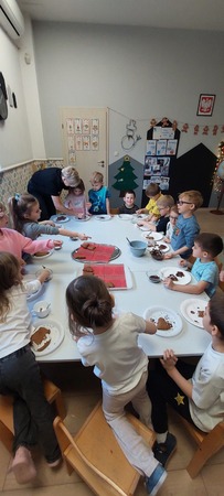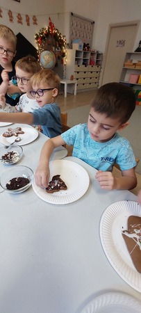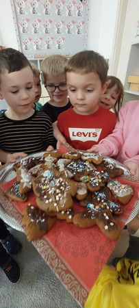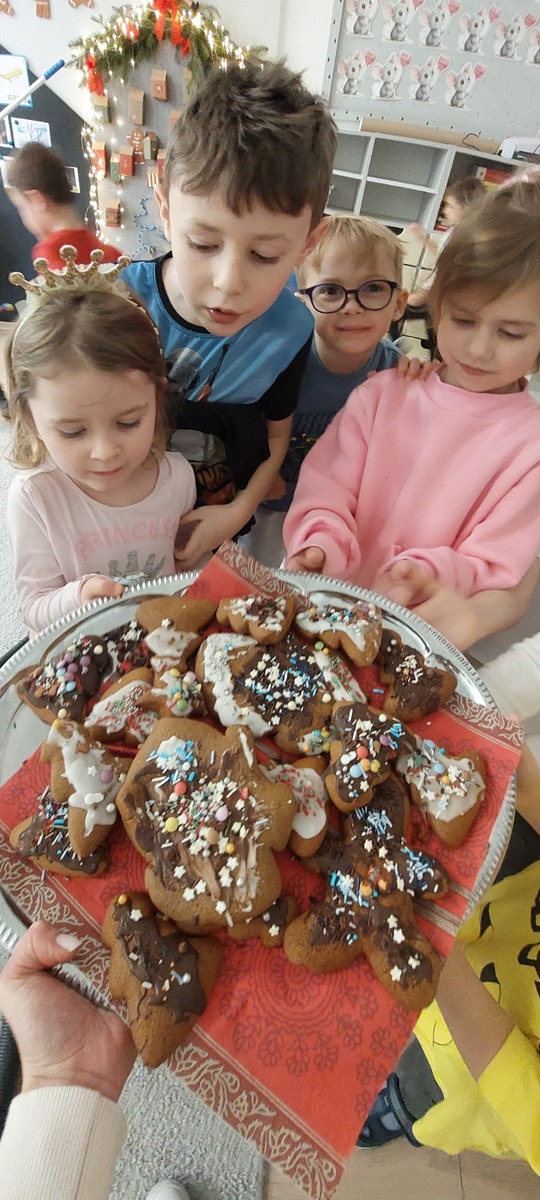 W grupie Myszek przygotowania do świąt pełną parą! W całym przedszkolu zapachniało śiętami, a to za sprawa naszych pysznych pierniczków, które dzieci z pomocą Pani Dyrektor przygotowały na świąteczny kiermasz.