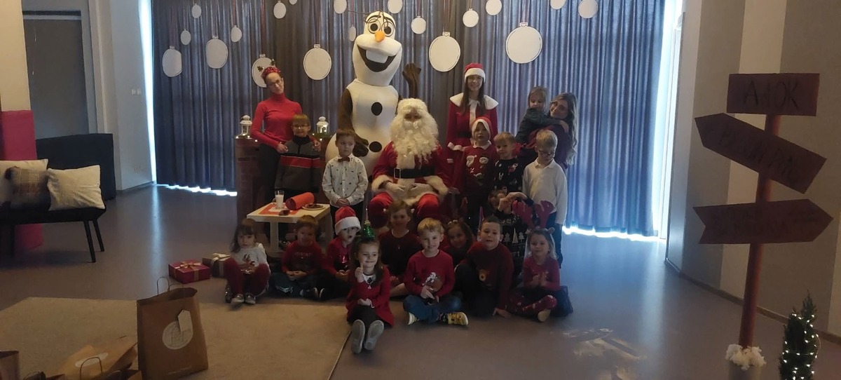 Nadszedł ten długo wyczekiwany dzień - wizyta wyjątkowego gościa. Dzieci nadsłuchiwały dźwięku dzwoneczków, które słychać było już z daleka i świadczyło to o tym, że do przedszkola zbliża się nikt inny, jak Święty Mikołaj we własnej osobie. Dzieci były szczęśliwe i rozpromienione. Chcąc pięknie przywitać Świętego Mikołaja nasze przedszkolaki zaśpiewały mu wspólnie piosenkę.